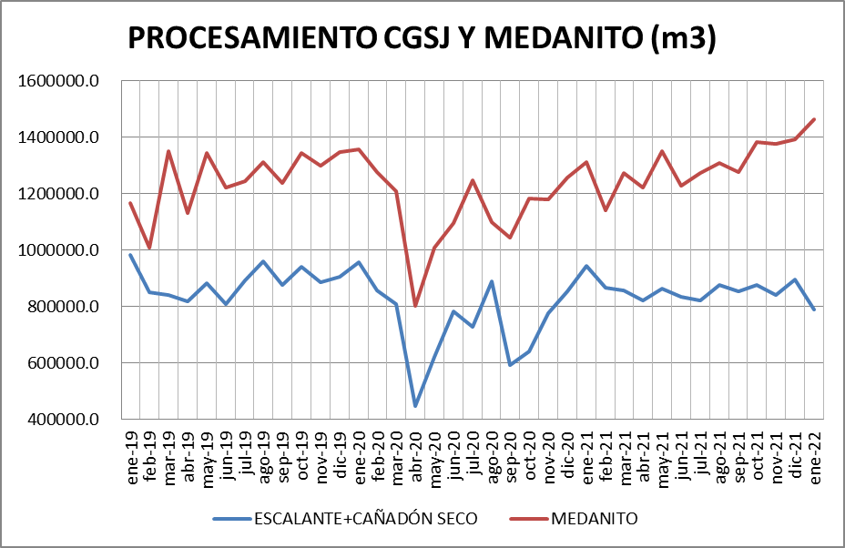 Escalante-Cañadón Seco: Se procesó un 11,72% menos que en diciembre y un 16,36% menos que en enero de 2021.