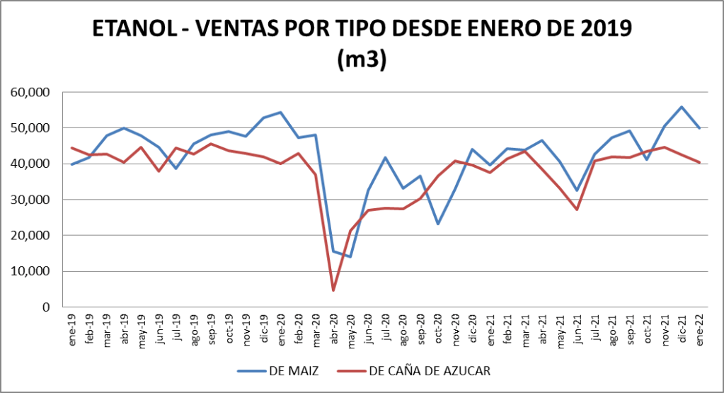 | ETANOL DE CAÑA (L) | 0.5708 | -2.02% | 12.54% |
