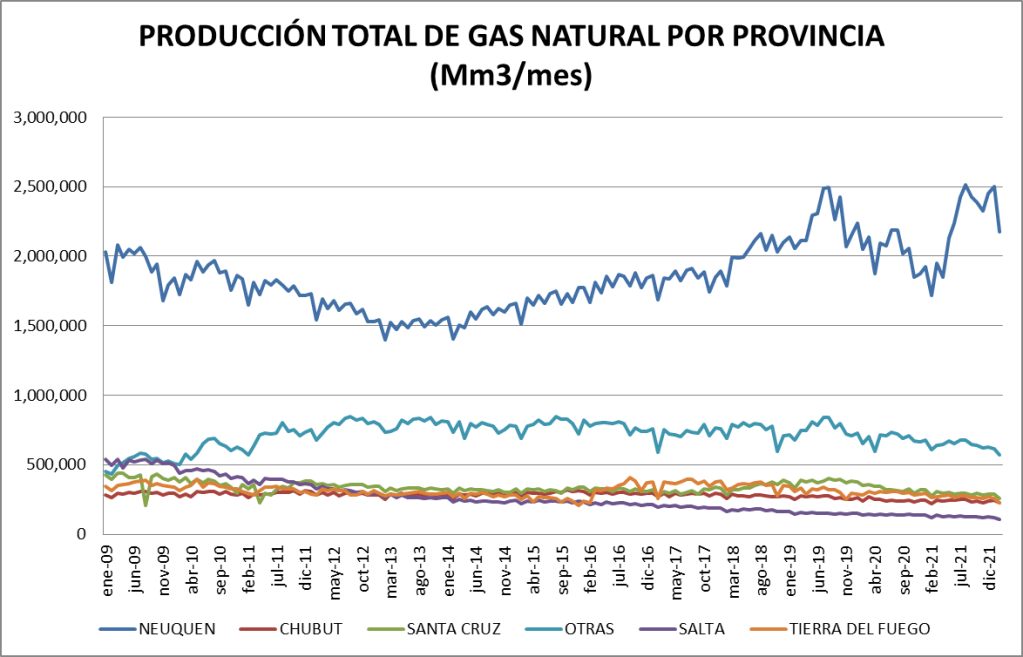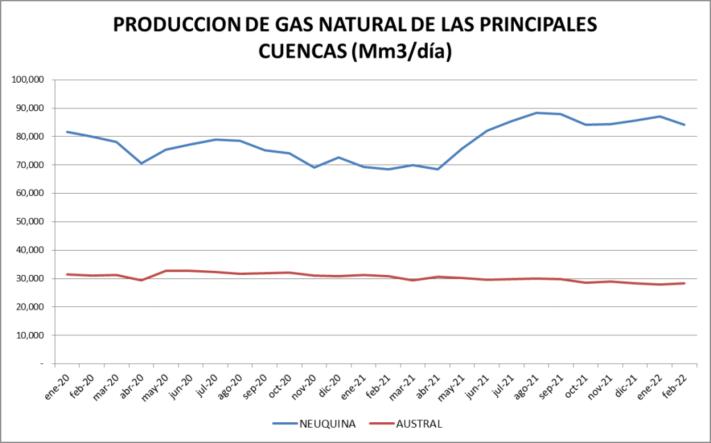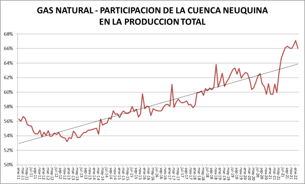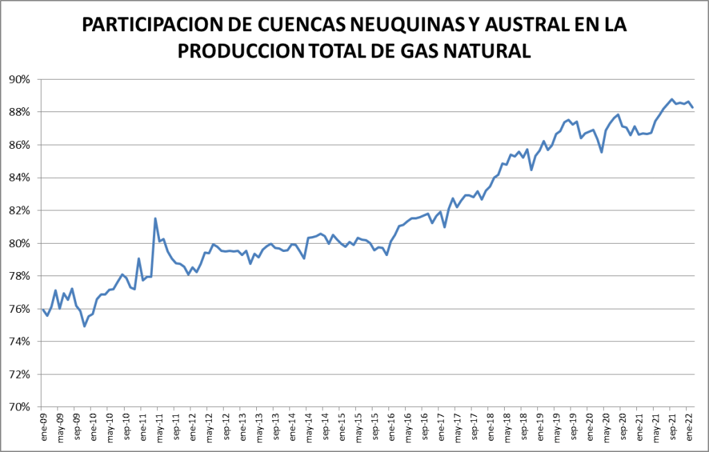 En el caso del gas natural la cuenca preponderante es la neuquina: