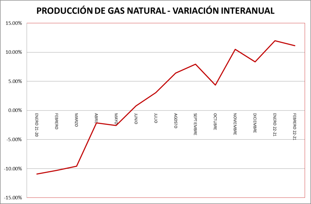| GAS NATURAL | PRODUCCIÓN FEBRERO 2022 (Mm3) | VARIACIÓN RESPECTO AL MES ANTERIOR | VARIACIÓN RESPECTO AL MISMO MES DEL AÑO ANTERIOR |