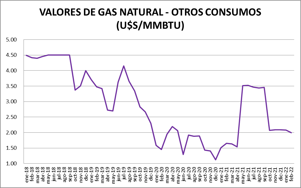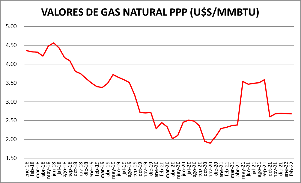 Vuelve a ser con poco movimiento de precios el informe de valores de gas natural en febrero de 2022.