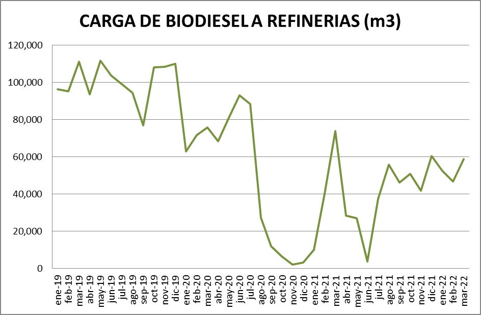 En cuanto al bioetanol, se utilizó en marzo de 2022, un 15,95% menos que en febrero de 2022.