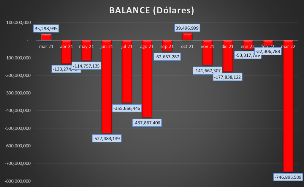 Las importaciones subieron, respecto de febrero, un 137,2% y las exportaciones cayeron un 13,3%.