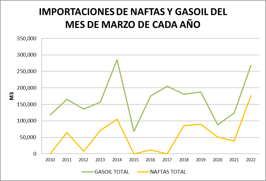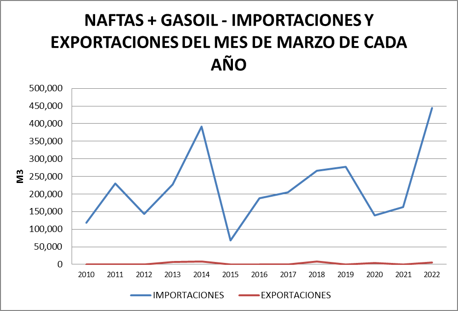 El volumen importado de naftas y gasoil en marzo de 2022 fue el mayor de los últimos 12 años. Lo mismo había sucedido en febrero.