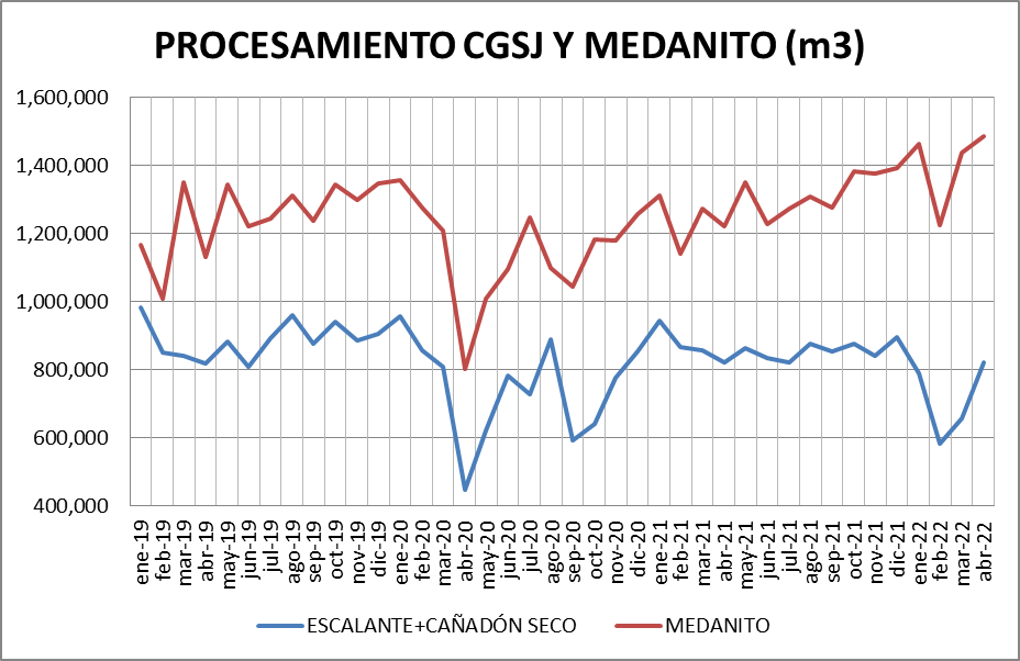 Medanito: En abril de 2022 se procesó un 3,36% más que en el mes anterior y un 21,71% más que en abril de 2021.