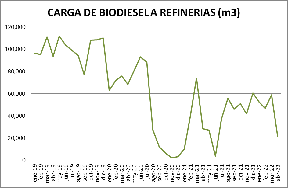 Cae fuertemente en abril la carga de biodiesel en refinerías un 63,28% respecto al mes anterior. Esta situación es incomprensible ante la ya indisimulable situación de desabastecimiento de gasoil en el país. Alertamos, más allá del desabastecimiento, sobre el incumplimiento de la legislación vigente.