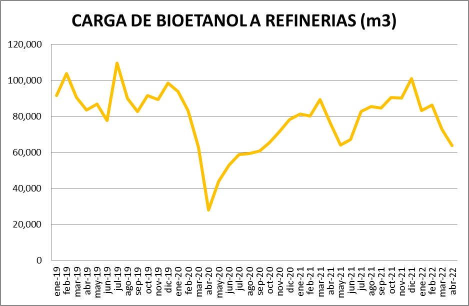 En cuanto al bioetanol, se utilizó en abril de 2022, un 12,11% menos que en marzo de 2022.