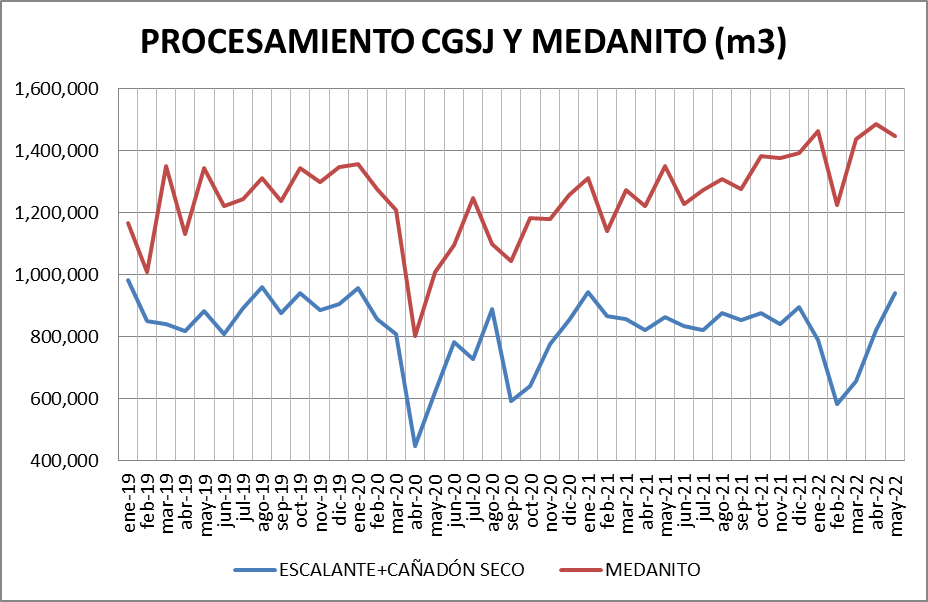Medanito: En mayo de 2022 se procesó un 2,69% menos que en el mes anterior y un 7,01% más que en mayo de 2021.