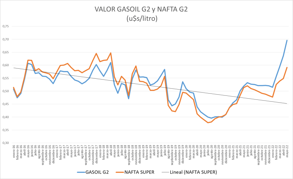 En mayo de 2022, por cuarto mes consecutivo, se produce un importante incremento del Margen Bruto de Refinación del gasoil grado 2 en un 18,25%, mientras que el de la nafta súper también sube un 17,91%, ambos respecto a abril del mismo año.
