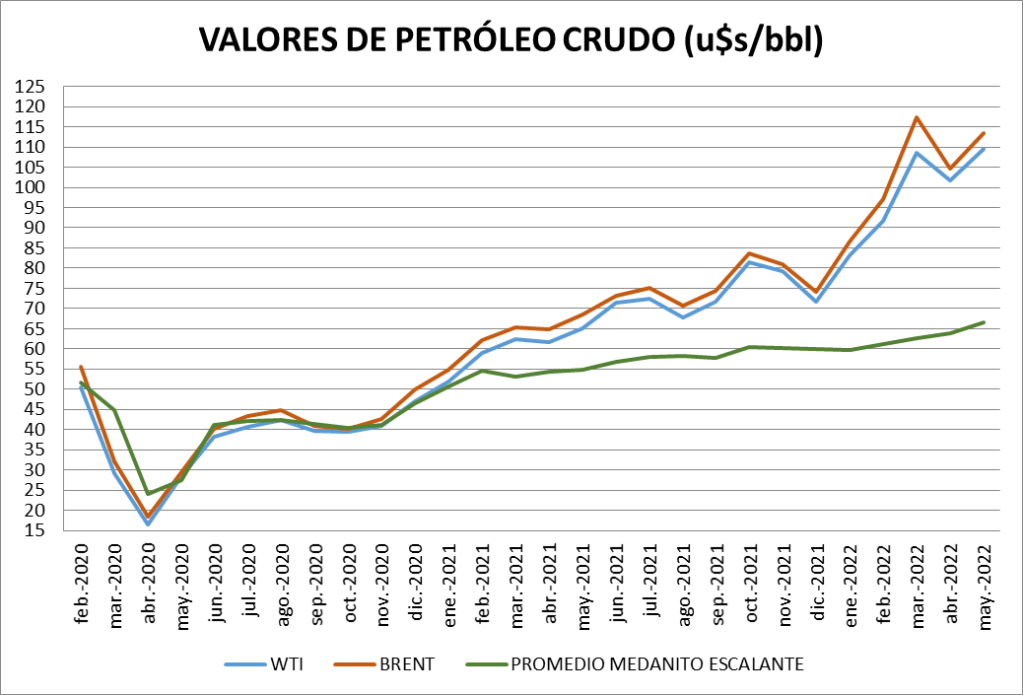 El precio internacional del crudo aumentó en el mes de mayo de 2022.
