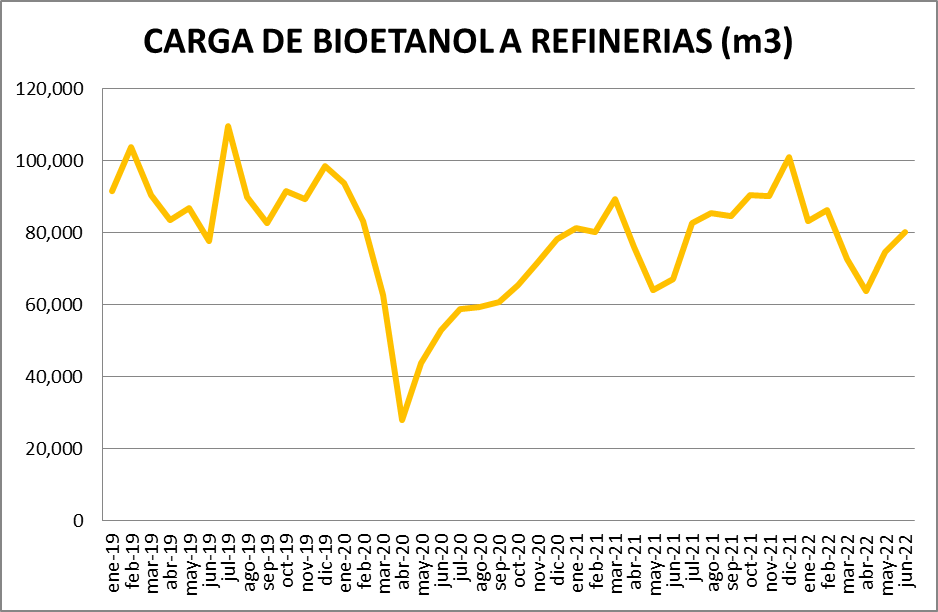 En cuanto al bioetanol, se utilizó en junio de 2022, un 7,34% más que en mayo de 2022.