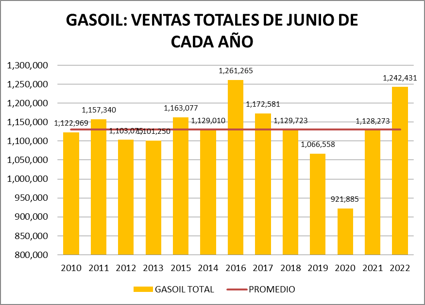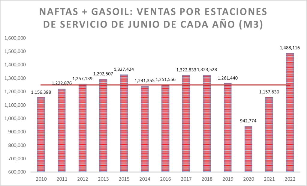 Pero en el caso de las ventas de naftas junio de 2022 sí es el mejor junio: