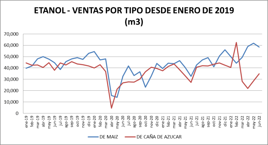 | Etanol de Maíz (m3) | 54,973 | -6.81% | 76.62% |