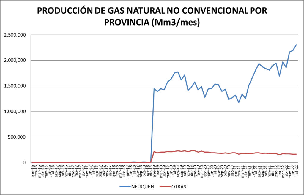 PRODUCCIÓN NO CONVENCIONAL DE GAS NATURAL POR PROVINCIA (Mm3/mes)