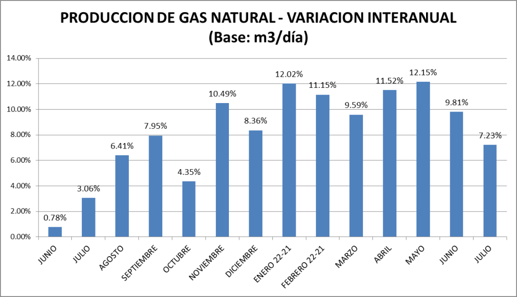 La producción de gas natural de los meses de julio de cada año puede verse en el gráfico a continuación: