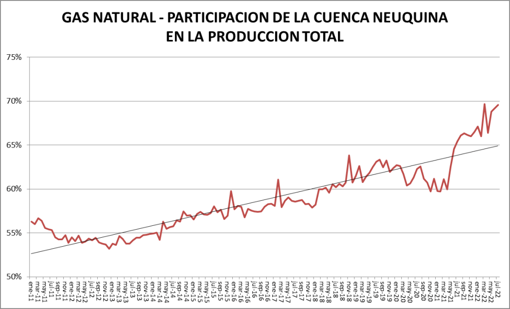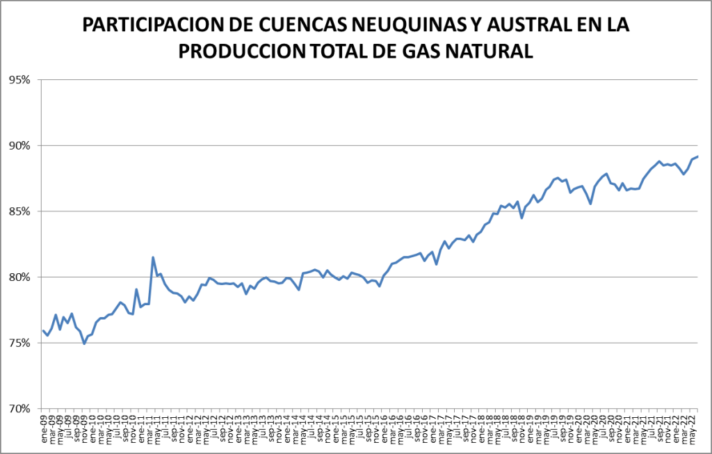 En el caso del gas natural la cuenca preponderante es la neuquina: