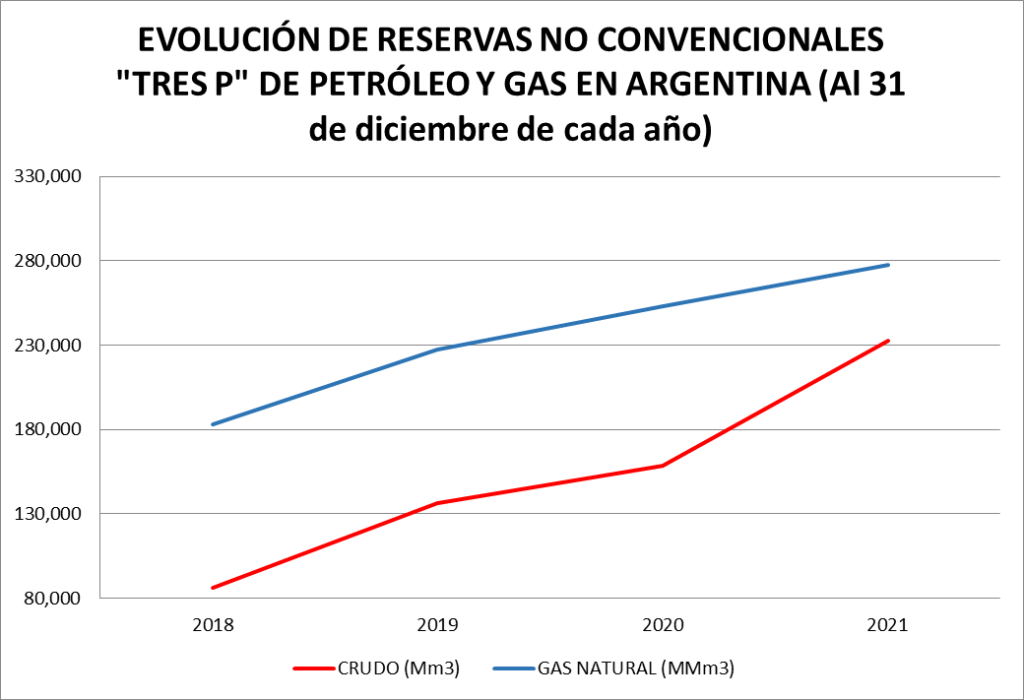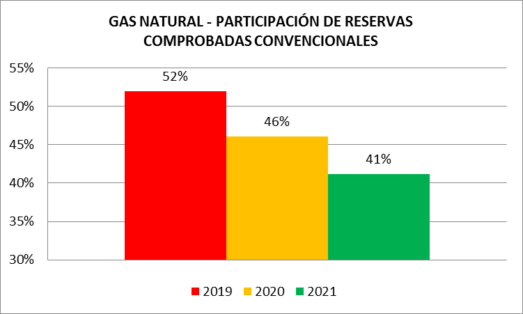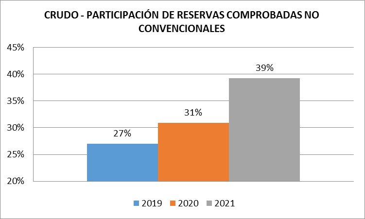 La participación de las reservas no convencionales pasó del 27,0% en el 2019, al 30,9% en 2019, y al 39,3% al 31 de diciembre de 2021.