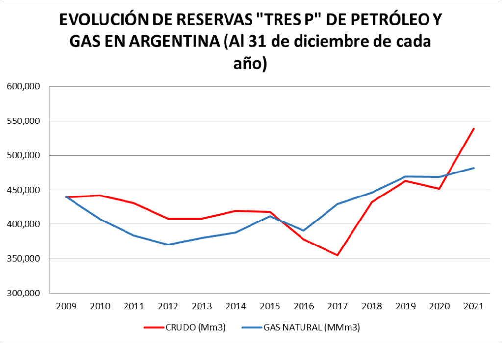 Gas Natural: Las reservas comprobadas aumentaron un 4,72% al 31 de diciembre de 2021 respecto del mismo día del 2020.