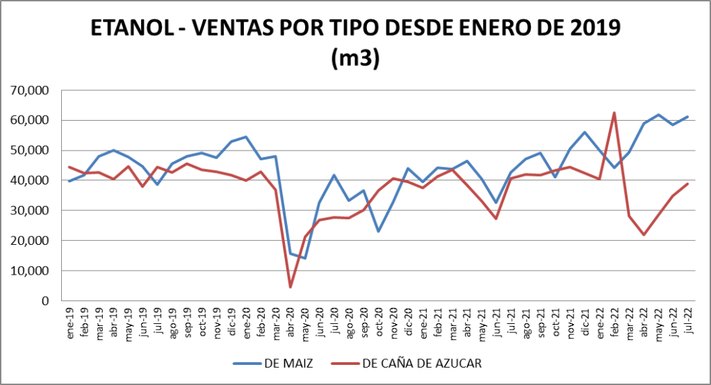 | Etanol de Maíz (m3) | 52,012 | -5.39% | 36.83% |