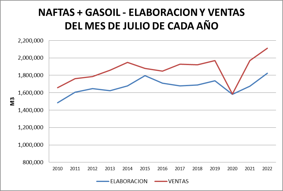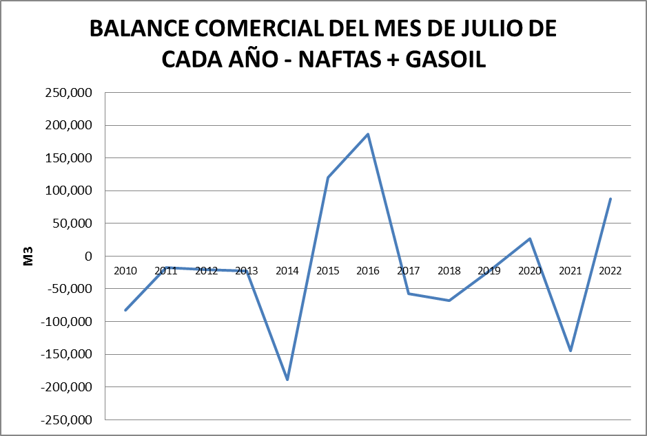 Más adelante veremos que el positivo de gasoil grado 3 se debe a mayor elaboración y también mayor importación que en julio de años anteriores. VER