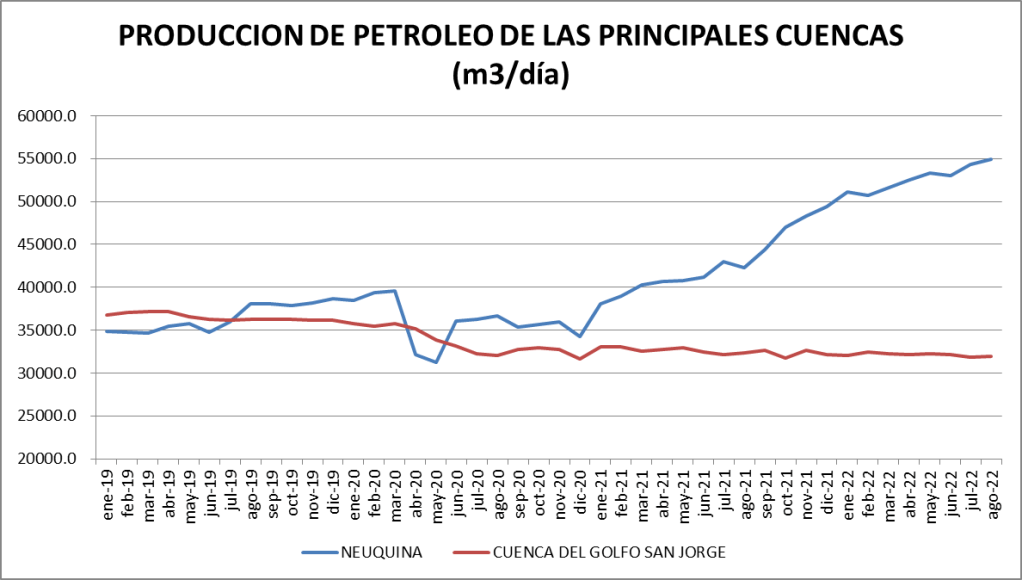 Del período analizado la producción diaria de agosto de 2022 es la segunda. El crecimiento respecto al año anterior es de 5,3%.