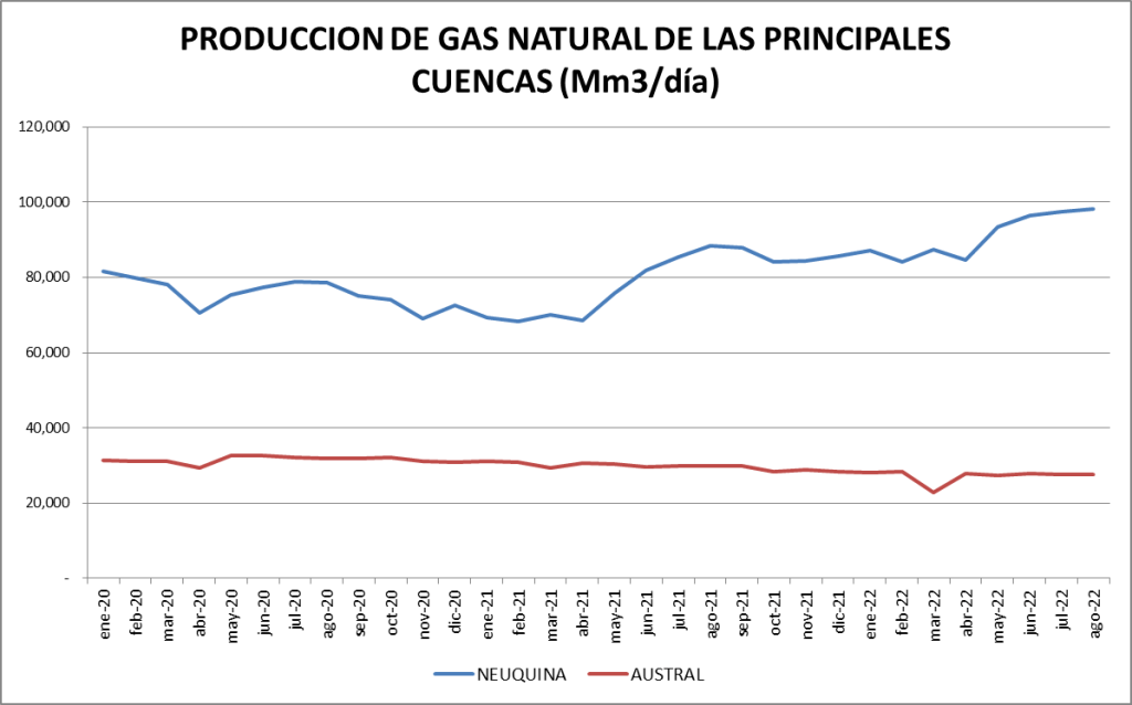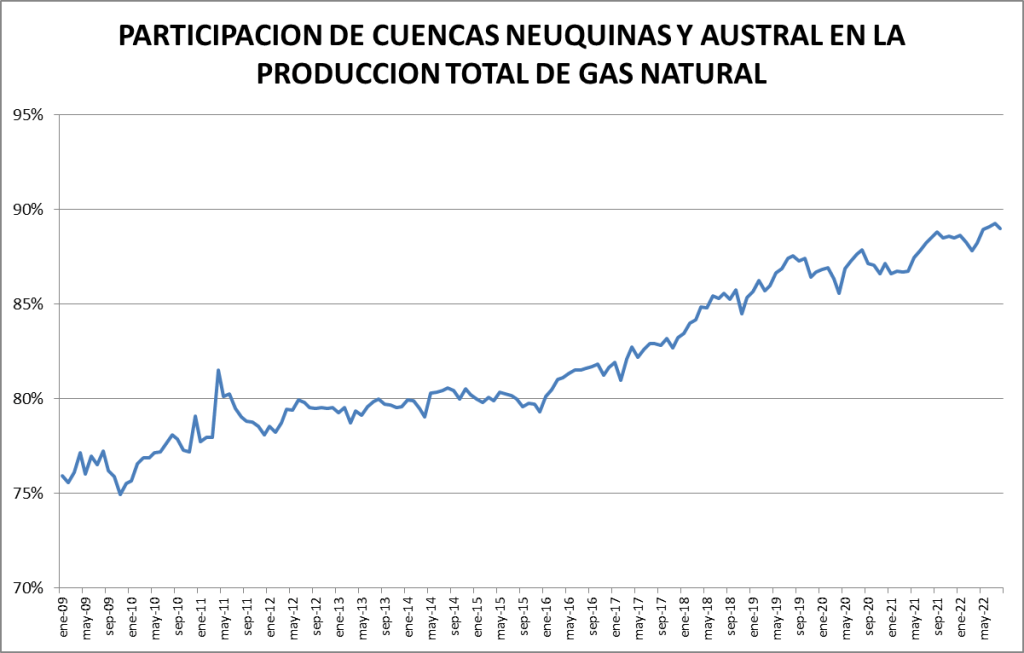 En el caso del gas natural la cuenca preponderante es la neuquina: