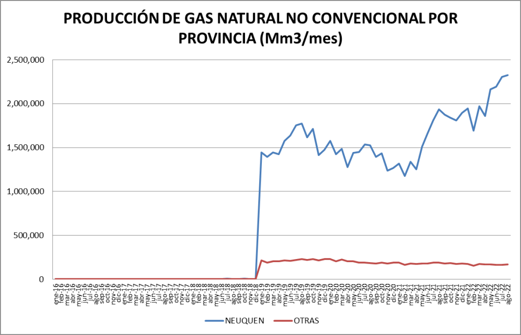 PRODUCCIÓN NO CONVENCIONAL DE GAS NATURAL POR PROVINCIA (Mm3/mes)