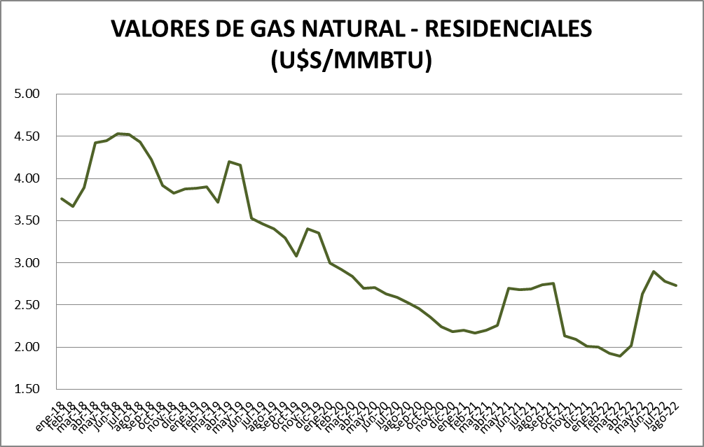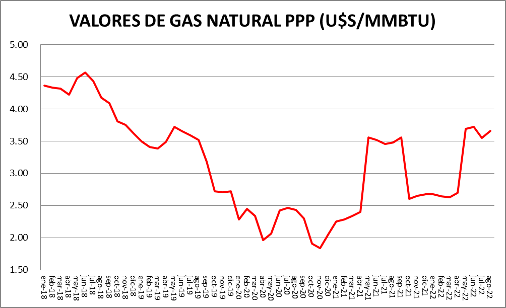 Vuelve a ser con poco movimiento de precios el informe de valores de gas natural en agosto de 2022.