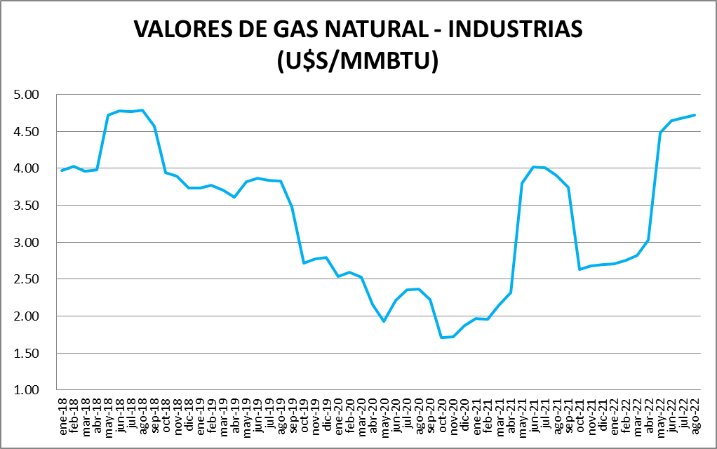 Se consolidan los aumentos acontecidos a partir de enero de 2022 con un valor (4,72 u$s/MMBTU) que es apenas inferior al más alto de la serie.