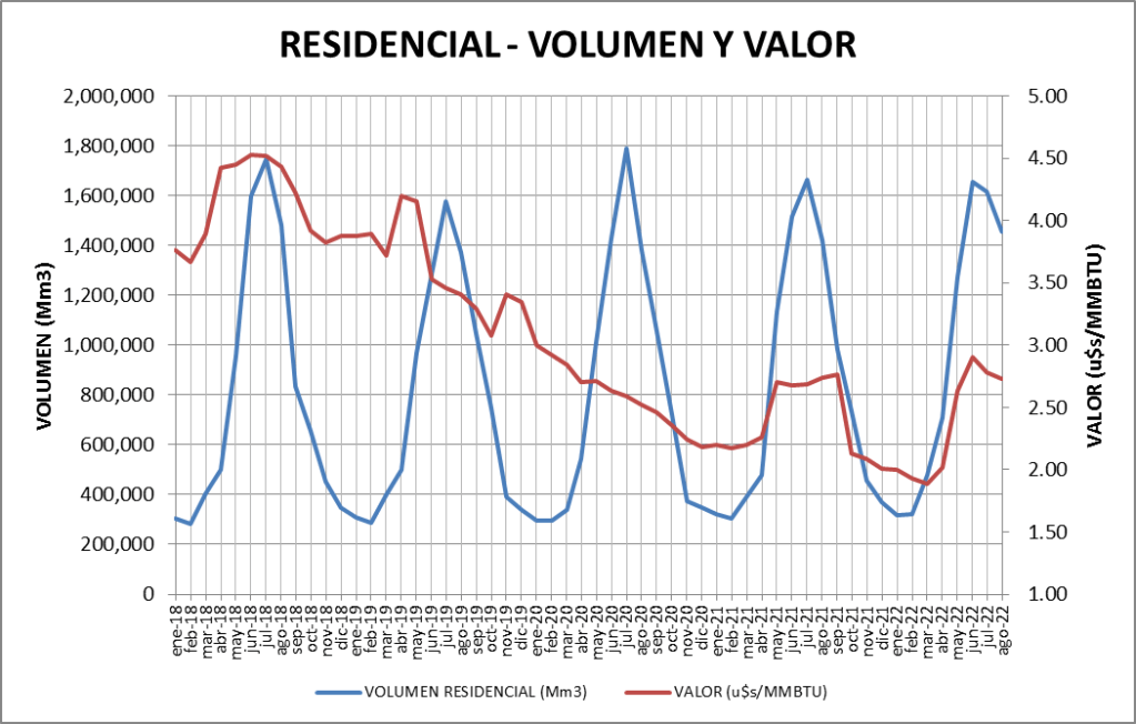 El sector Residencial es el que consume más cantidad de gas natural, en invierno, con una muy clara estacionalidad.