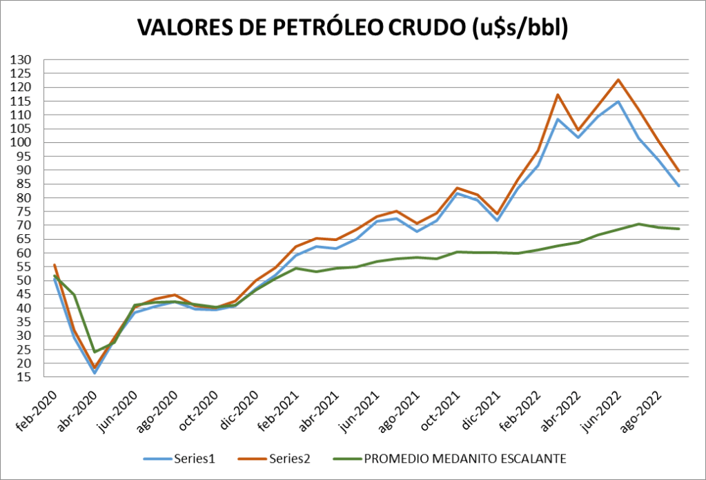 El promedio nacional de septiembre de 2022 es de 68,81 dólares por barril.