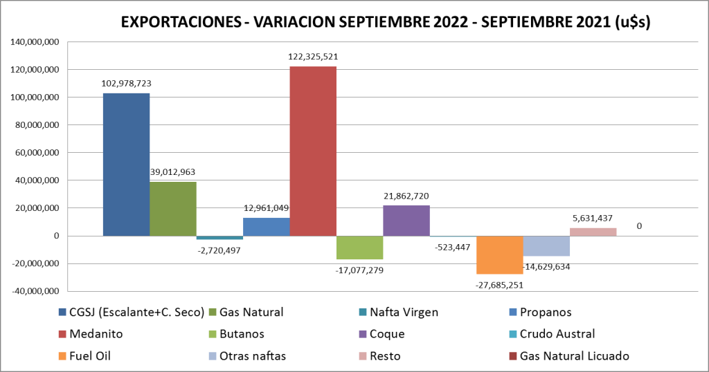 En septiembre de 2022 se exportaron 190.204 m3 de Escalante a un valor promedio de 86,07 u$s/bbl..