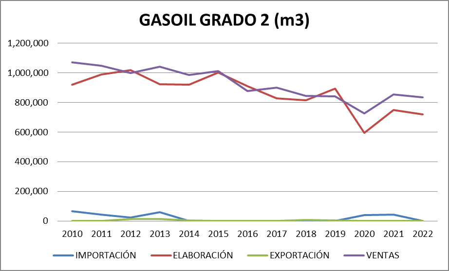 En octubre de 2022, al igual que en los meses anteriores del mismo año, aparece un balance negativo de gasoil grado 2 que podrían significar problemas de abastecimiento puntuales.