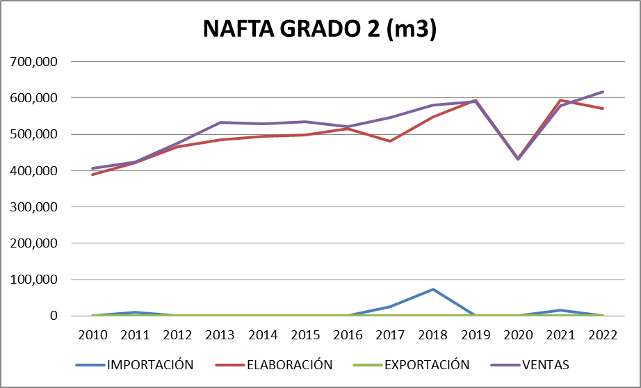 En la venta de nafta grado 3 un 50,5% provino del exterior. No se importó nafta grado 2.