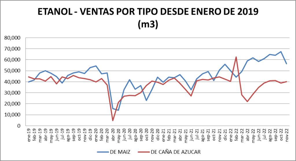 | Etanol de Maíz (m3) | 57,780 | -7.49% | 20.74% |