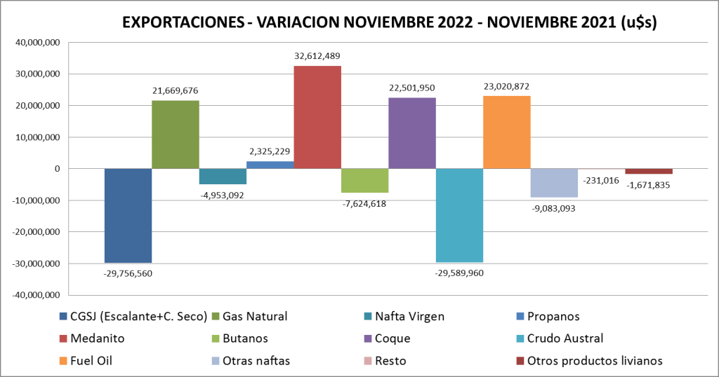 La Balanza de Comercio Exterior de hidrocarburos de Argentina fue positiva en 31,1 millones de dólares en noviembre de 2022.