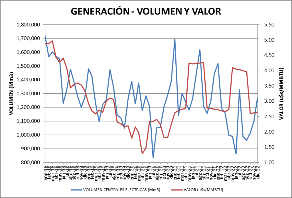 El precio del gas natural dirigido a la generación eléctrica, en diciembre de 2022, subió un 0,76% respecto a noviembre pero es un 3.65% inferior al de diciembre de 2021.