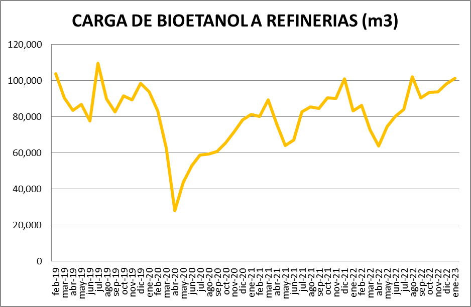 En cuanto al bioetanol, se utilizó en enero de 2023, un 3,21% más que en diciembre de 2022.