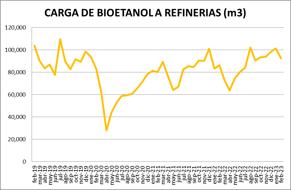 En cuanto al bioetanol, se utilizó en febrero de 2023, un 8,96% menos que en enero de 2023.