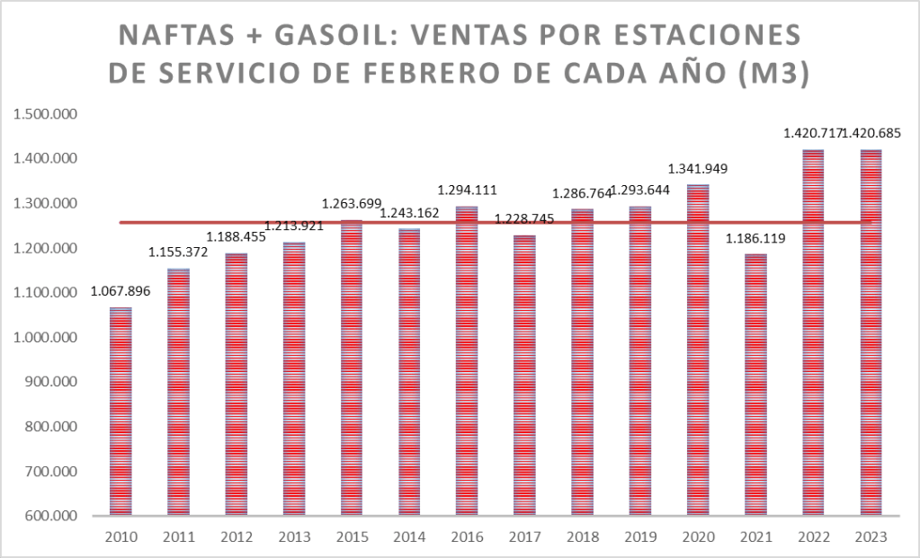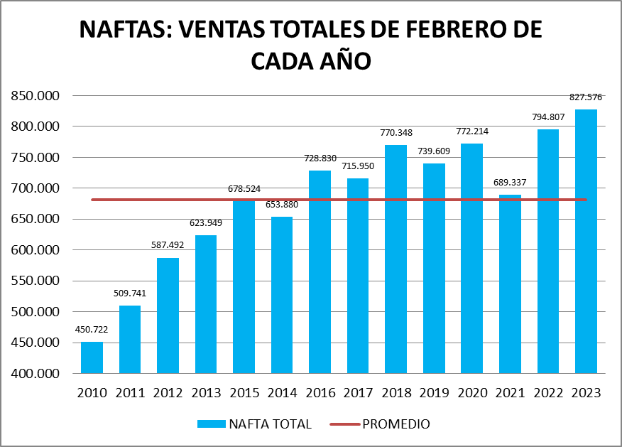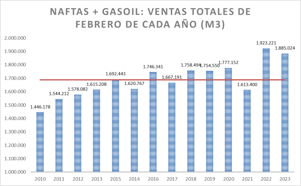 En el caso de las naftas, en febrero de 2023, la venta fue la mejor de la serie.