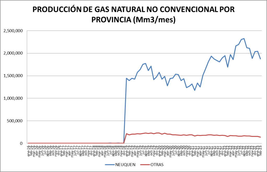 PRODUCCIÓN NO CONVENCIONAL DE GAS NATURAL POR PROVINCIA (Mm3/mes)
