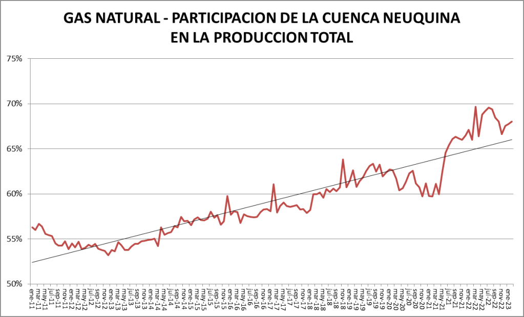 En el caso del gas natural la cuenca preponderante es la neuquina: