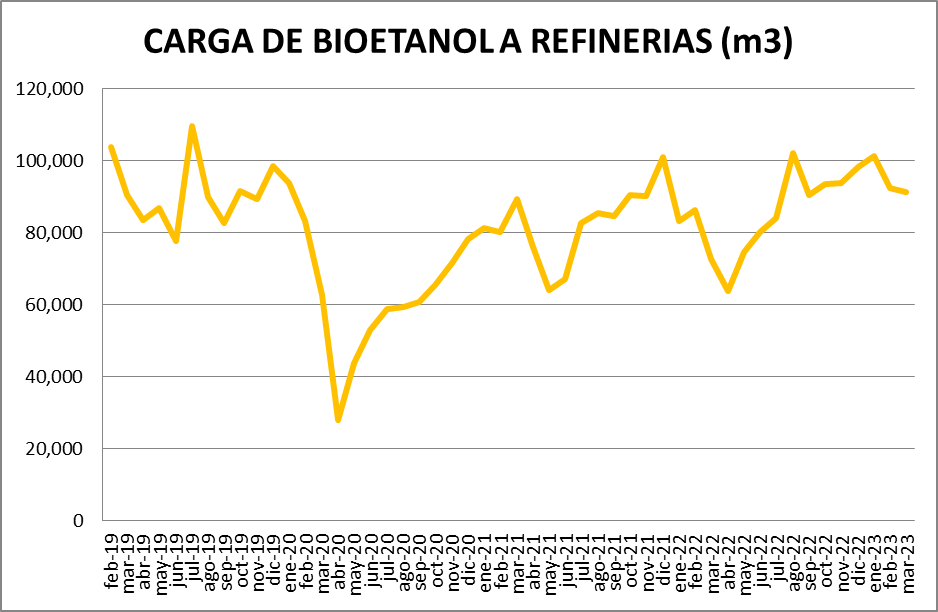 En cuanto al bioetanol, se utilizó en marzo de 2023, un 1,09% menos que en febrero de 2023.