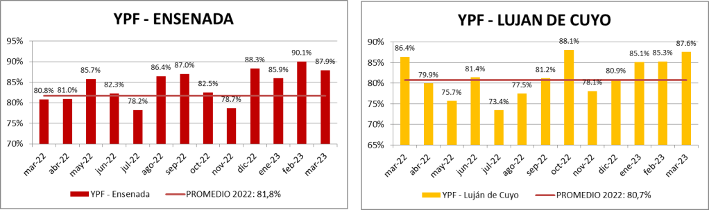 El informe se realiza sobre la base de las principales refinerías, según el siguiente detalle: