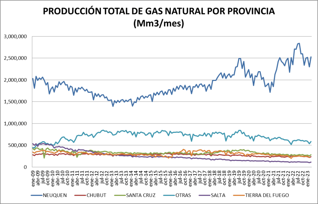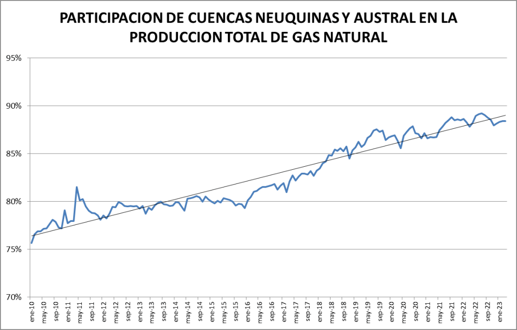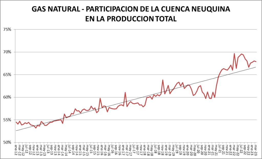 En el caso del gas natural la cuenca preponderante es la neuquina: