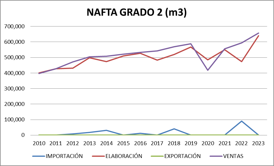 También hay balance negativo en nafta grado 2, quizás inducido por el consumo estacional.