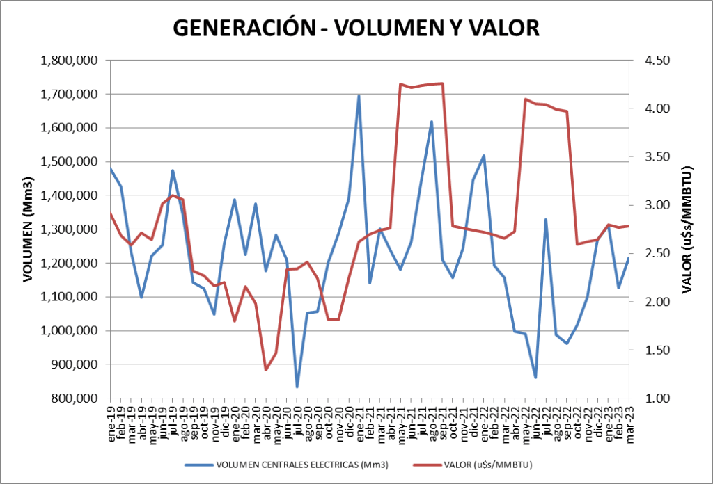 En cuanto al valor de las exportaciones (6,99 u$s/MMBTU), bajaron en marzo un 0,14% respecto a febrero (7,00 u$s/MMBTU).