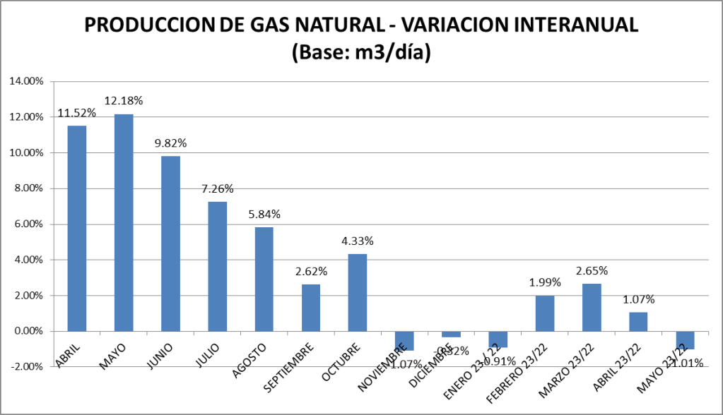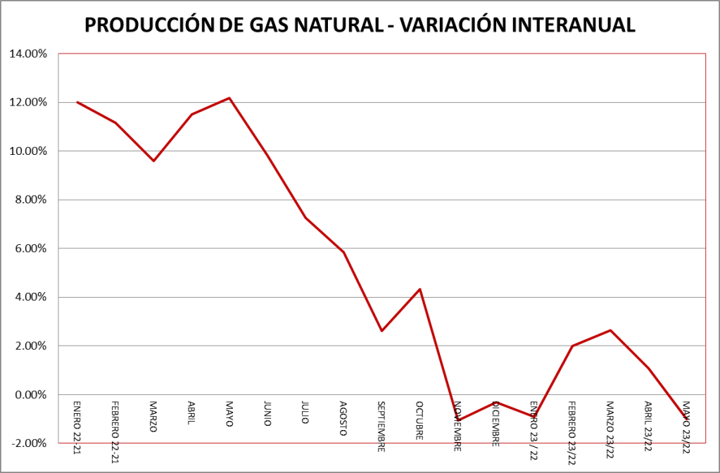 La producción de gas natural de los meses de mayo de cada año puede verse en el gráfico a continuación: