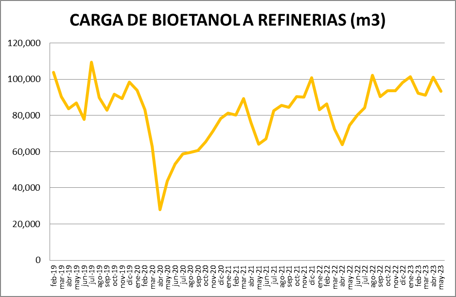 En cuanto al bioetanol, se utilizó, en mayo de 2023, un 7,77% menos que en abril de 2023.