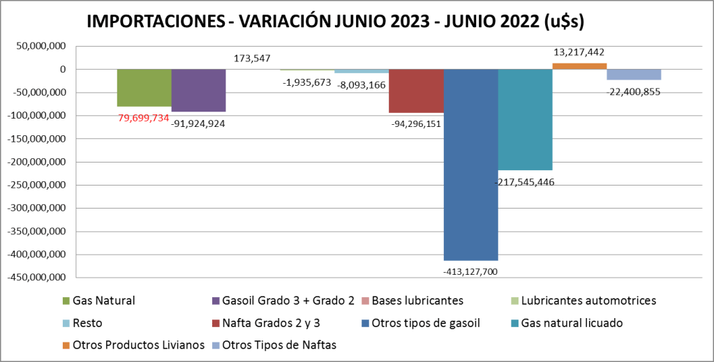Para el mes de junio de 2023, al no registrar, la Secretaría de Energía, nuevamente, importaciones de gasoil para generación ni de fuel oil, hemos decidido incluir los datos del INDEC donde figuran valores de 83,7 millones de dólares para el primero y de 53,0 para el segundo.